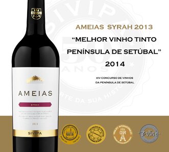 SIVIPA’S Ameias Syrah 2013 has just been awarded "Best Setúbal Peninsula Red Wine" at the XIV Setúbal Peninsula Wine Competition promoted by the Regional Wine Commission. The award, announced Thursday May 15, 2014 joins the gold prizes collected in a few days, at the Concours Mondial de Bruxeles, Vinalies Internationales, by the Association of Sommeliers of Portugal, and also a mention at the IWC in London, in an extraordinary series of awards. The winners of the XIV Wine Competition of the Setúbal Peninsula Wine Commission promoted by the Region, were revealed 15 May at 19.0, at Palmela Castle. 102 wines of the region were evaluated by a jury of experts from various Portuguese wine regions, the Portuguese Association of Enology, Association of Sommeliers of Portugal and ASAE, trade press and representatives of the restoration, totalling 22 tasters. The procedure followed the recommendations of the International Organization of Vine and Wine (OIV ) and won this year's ranking of the Official Contest IVV IP classification that few wine contests hold in Portugal. In recent years, SIVIPA’s varietals have been awarded around the world. In this new collection 2013 highlights the Syrah, which just also get 90 points from AEP - Association of Sommeliers of Portugal, receiving prestigious award Tambuladeira de Ouro. This is the more extraordinary as the positioning of SIVIPA is to share the best of Palmela region at affordable prices.